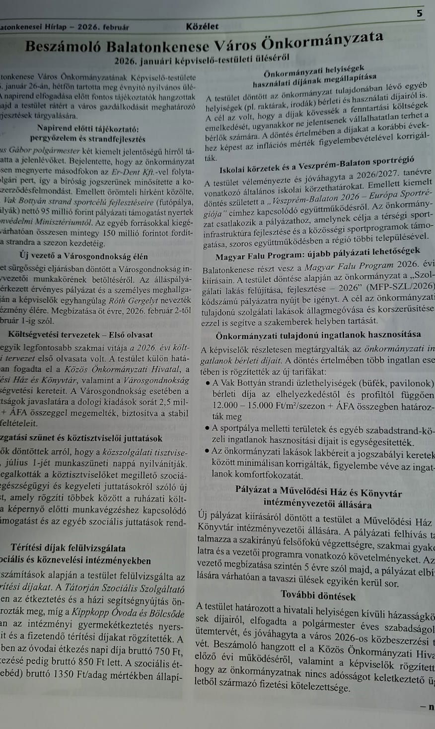 A Balatonkenesei Hírlap februári száma nyomtatott formában, nálunk is megtalálható.