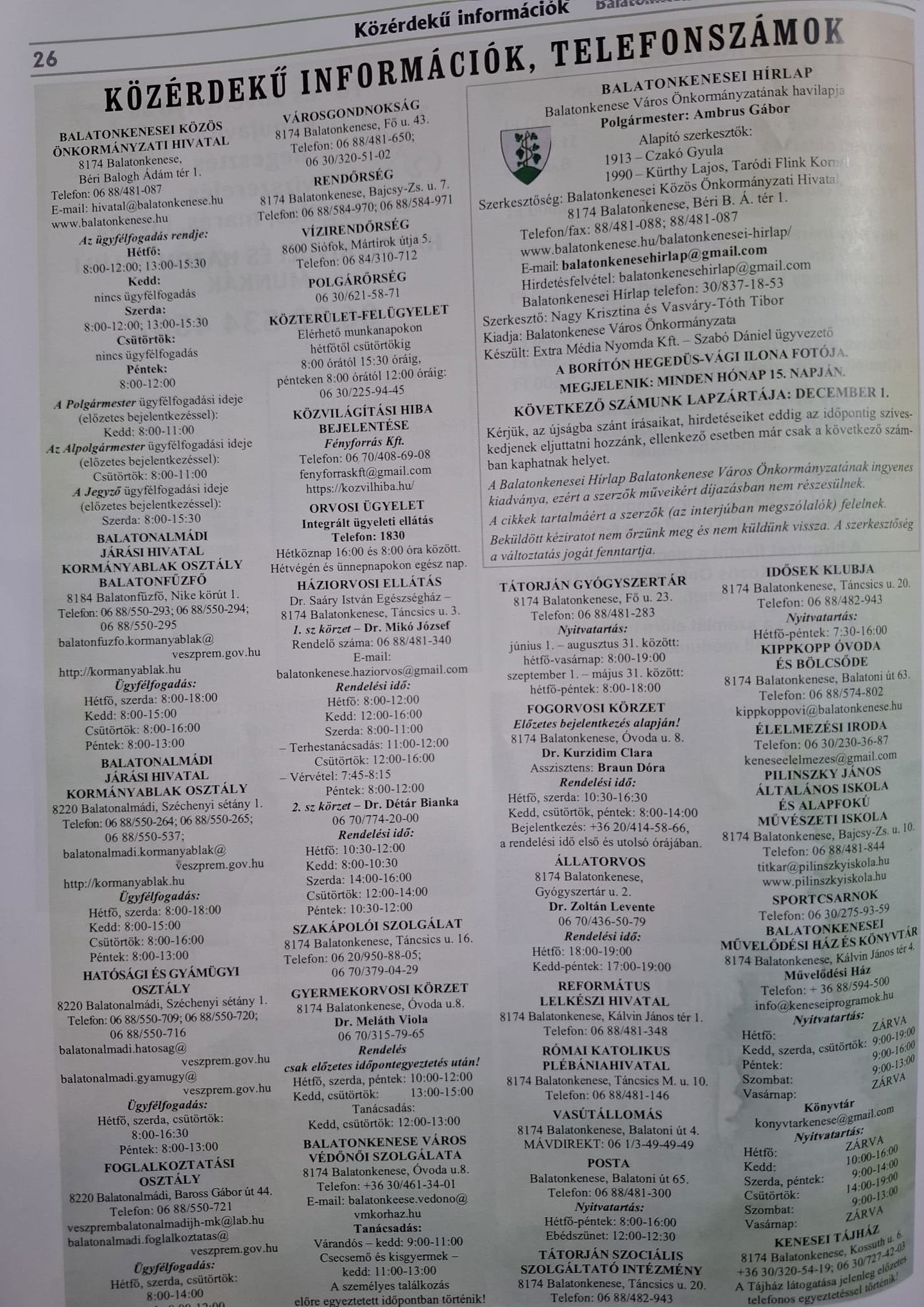 Rengeteg közérdekű információ, fontos telefonszámok és érdekes cikkek.